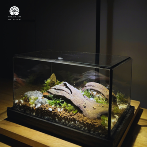 - Đá tự nhiên: Tăng thêm tính chân thực cho tiểu cảnh, tạo cảm giác địa hình và cân bằng bố cục cảnh quan trong terrarium.
