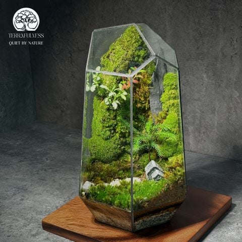 Bạn đang tìm kiếm một terrarium độc đáo, một tiểu cảnh thư giãn mang đến sự bình yên từ một khung cảnh miền quê thanh bình với vách núi rêu phong và cảm hứng cho không gian làm việc của mình? Terrarium Lối Nhỏ chính là lựa chọn hoàn hảo. Mô phỏng một con đường nhỏ yên bình đi đến ngôi nhà tựa vào vách núi rêu xanh tĩnh lặng, terrarium này như một khoảng lặng quý giá, nơi mọi thứ chậm lại để bạn có thể thư giãn và lắng đọng tâm hồn.