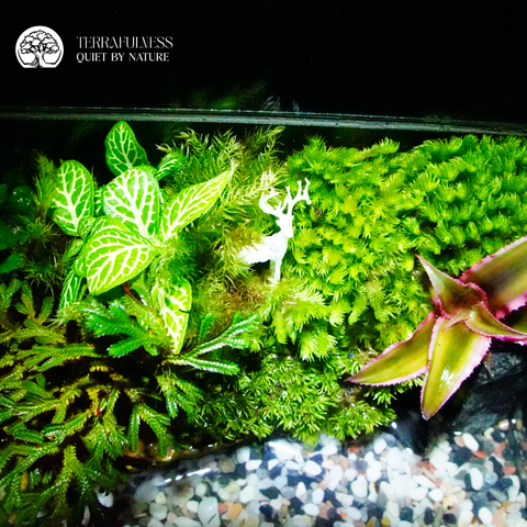 - Thành phần tự nhiên: Rêu và cây thủy sinh mang lại sắc xanh tươi mát, dễ thích nghi trong môi trường trong nhà.