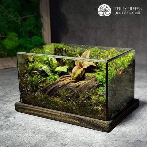 - Bể kính cao cấp: Trong suốt, viền thanh mảnh, tôn lên toàn bộ vẻ đẹp của terrarium.