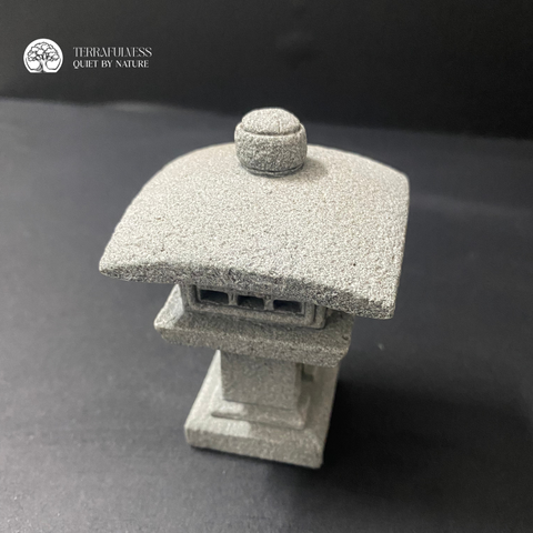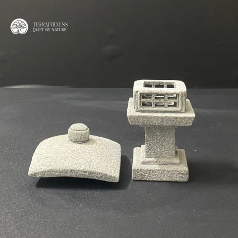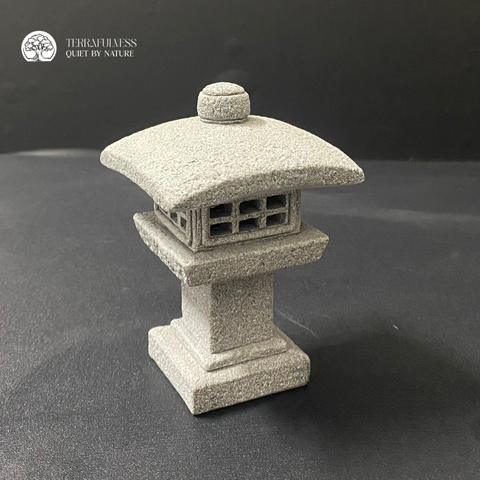 Kiểu dáng đèn D-5 mang đặc trưng mái chóp phẳng, thân trụ đơn giản – vừa cổ điển vừa hiện đại. Khi kết hợp cùng tượng Phật, rêu xanh và ánh sáng hắt nhẹ, tượng đèn đá trở thành một "nguồn sáng thiền" dẫn dắt tâm trí về nơi tĩnh tại. Được chế tác từ đá giả cao cấp, sản phẩm có màu xám trung tính cùng bề mặt sần nhẹ tạo cảm giác tự nhiên, dễ phối hợp với các vật liệu như sỏi trắng, rêu xanh, đá cuội và tượng tiểu tăng. Với cấu trúc vững chắc và độ hoàn thiện cao, tượng đèn đá này không chỉ phù hợp trong terrarium thiền mà còn có thể sử dụng để decor bàn làm việc, kệ sách hay làm quà tặng mang năng lượng tích cực.