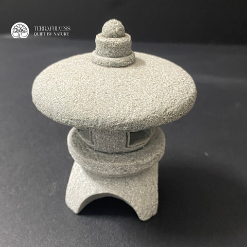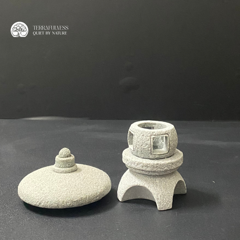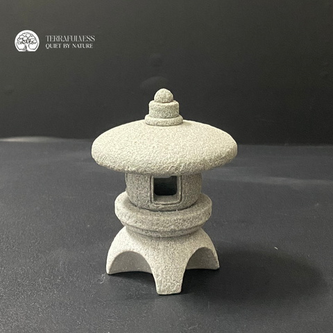 Lấy cảm hứng từ kiến trúc đèn đá truyền thống (Ishidōrō) trong các khu vườn Nhật Bản, Tượng Đèn Đá Nhật Mini sở hữu thiết kế mái vòm cong như nấm, thân đèn tròn có cửa sổ và phần chân đế ba nhánh vững chãi. Tổng thể mang dáng dấp mộc mạc, tự nhiên nhưng vẫn giữ được nét thanh tịnh, trang nhã – rất phù hợp để điểm xuyết trong các bố cục terrarium phong cách Zen, Wabi-Sabi hoặc vườn thiền mini.