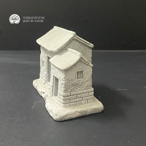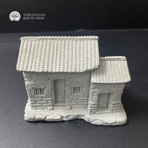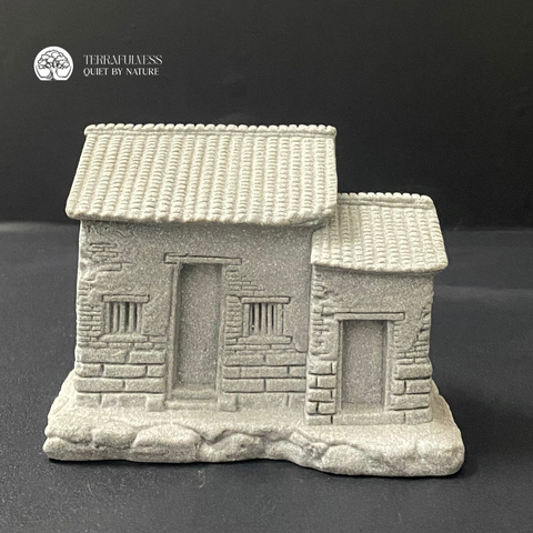 Tượng được chế tác từ đá sa thạch, từng đường nét tường gạch, mái ngói và nền đá đều được làm nổi bật với độ chi tiết cao. Mẫu tượng này rất phù hợp trong các bố cục terrarium mang phong cách hoài cổ, rustic hoặc tái hiện không gian làng quê Việt. Có thể kết hợp cùng giếng cổ, hàng rào, cây bonsai mini và tiểu cảnh rêu để tạo nên một khung cảnh sống động và gần gũi.