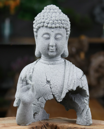 Tượng Phật Tĩnh Tâm Nửa Thân là một tác phẩm độc đáo mang dấu ấn của sự giác ngộ giữa vô thường. Thiết kế nửa thân với các vết nứt giả cổ tinh xảo gợi lên hình ảnh thời gian trôi qua, nhưng ánh mắt an yên và thủ ấn ban phước vẫn nguyên vẹn – như lời nhắc nhở rằng sự tỉnh thức vượt lên trên hình tướng.