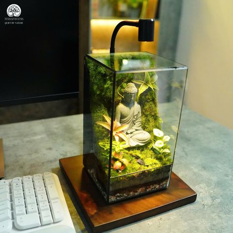 - Điểm Nhấn Tĩnh Lặng, Cân Bằng Năng Lượng: Terrarium Vòng Gỗ Tĩnh Tâm tạo ra một không gian yên bình, giúp cân bằng năng lượng và mang đến cảm giác hài hòa cho ngôi nhà bạn. Vẻ đẹp tự nhiên và sự tĩnh tại của tượng Phật sẽ xoa dịu mọi căng thẳng.